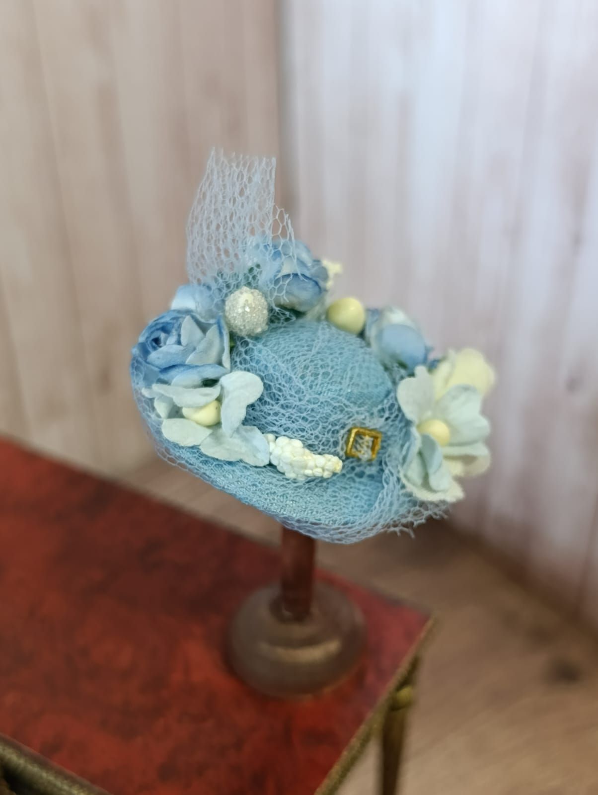Deze prachtige hoed in babyblauw is de ideale accessoire voor zonnige dagen aan zee. Met een schaduwrijke rand biedt deze hoed niet alleen stijl, maar ook bescherming tegen de zon. Perfect voor jouw poppenhuis in schaal 1:12, zodat je miniatuurfiguren helemaal opgaan in het strandgevoel. Let op: de hoed wordt geleverd zonder hoedenstandaard, maar dat maakt hem des te makkelijker te combineren met jouw bestaande poppenhuis accessoires. Maak het strandplezier compleet met deze charmante hoed!