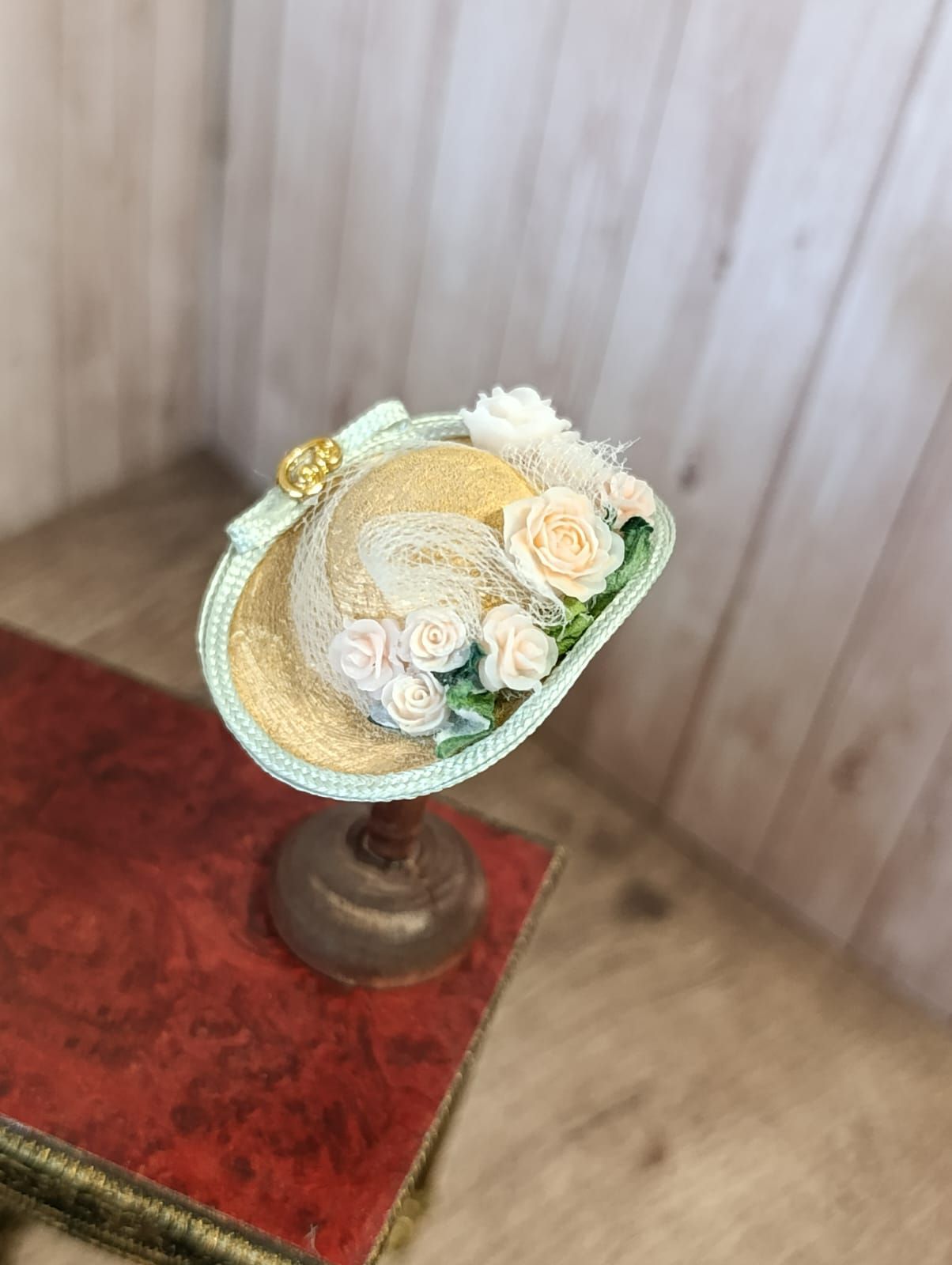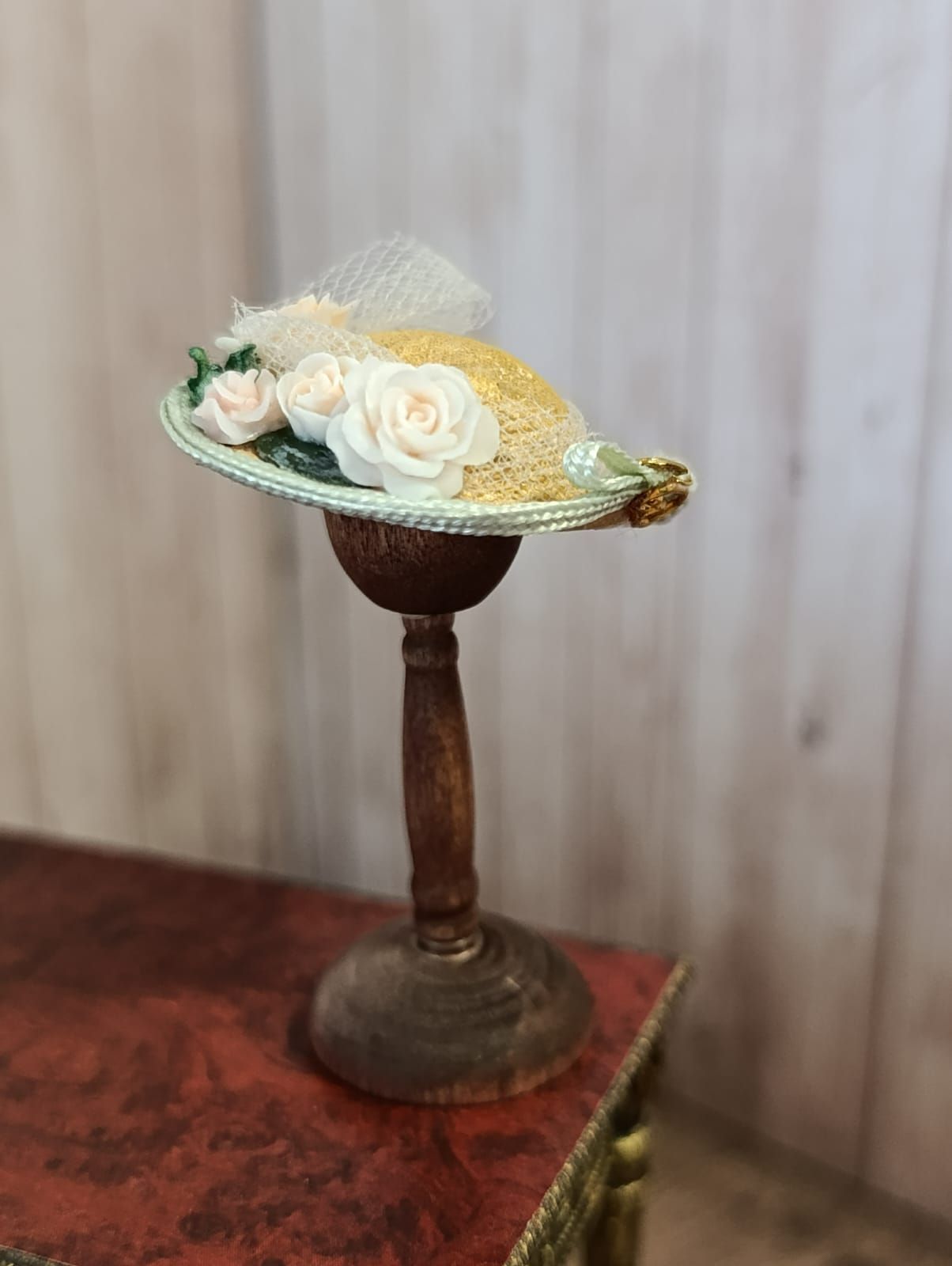 Dit fijne, zomerse hoedje is perfect voor diegenen die hun poppen of miniatuurfiguren willen voorzien van een chique uitstraling. Het hoedje is prachtig versierd met elegante details die het een unieke charme geven. Met een schaal van 1:12 is het ideaal voor poppenhuizen en miniaturen. Let op, dit product wordt geleverd zonder hoedenstandaard, maar dat maakt het alleen maar eenvoudiger om het hoedje naar eigen wens te stylen. Voeg dit prachtige accessoire toe aan je collectie en geef je creaties een stijlvolle finishing touch!