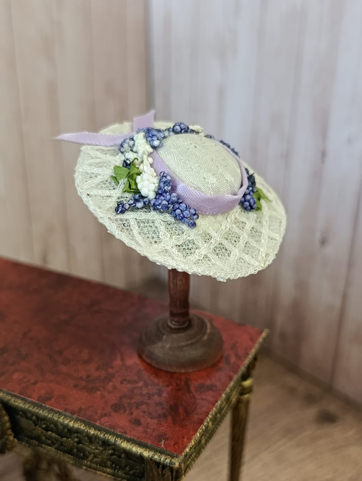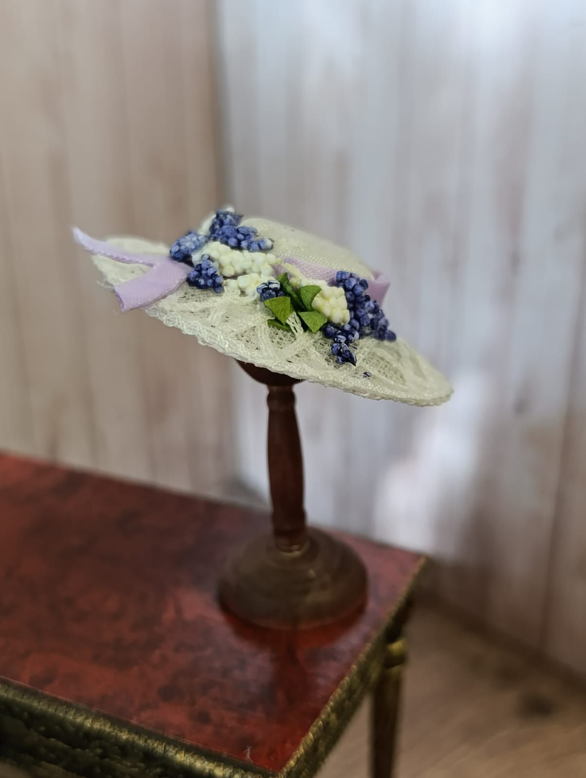 Ontdek het pronkstuk van deze unieke collectie: onze prachtige geweven hoed met delicate seringen en subtiele lila accenten, speciaal vervaardigd in 1:12 schaal. Dit bijzondere ontwerp is niet alleen een lust voor het oog, maar ook een echte blikvanger voor elke miniatuurliefhebber. De verfijnde details en het vakmanschap maken deze hoed tot een must-have toevoeging aan jouw verzameling. Ik ben hier dan ook bijzonder trots op! Let op, deze hoed wordt geleverd zonder hoedenstandaard, zodat jij creatieve vrijheid hebt in het presenteren ervan.